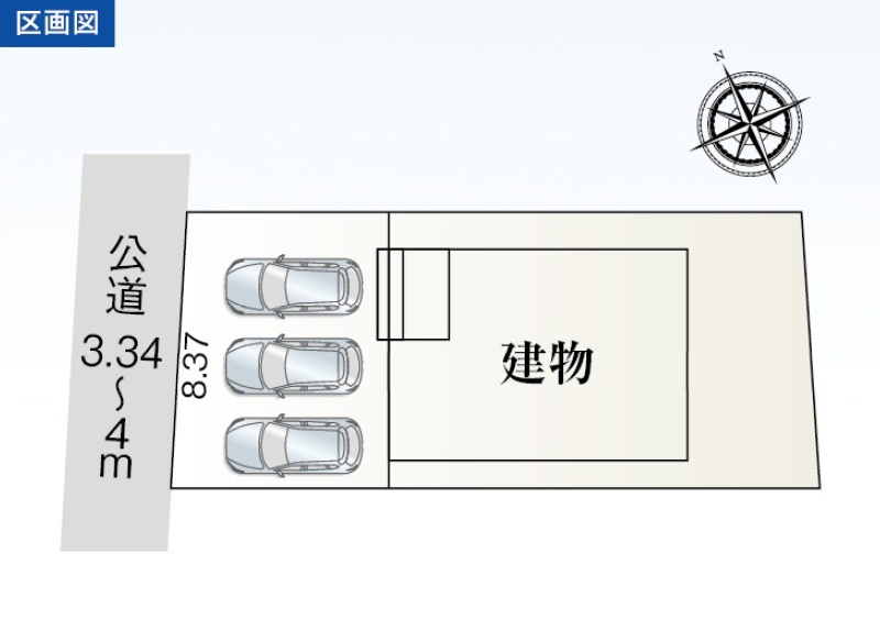接道 西側幅員約3.34m公道に約8.37m接道