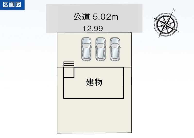 接道 | 北西側幅員約5.02m公道に約12.99m接道 |