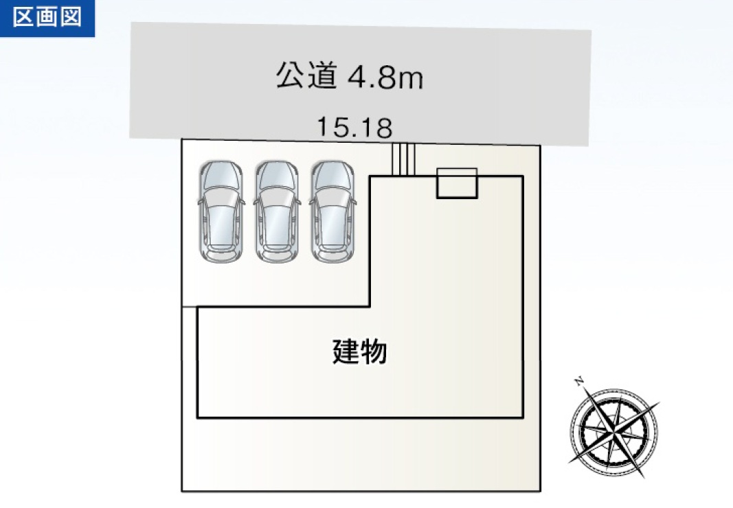 接道 | 北側幅員約4.8m公道に約15.18m接道 |