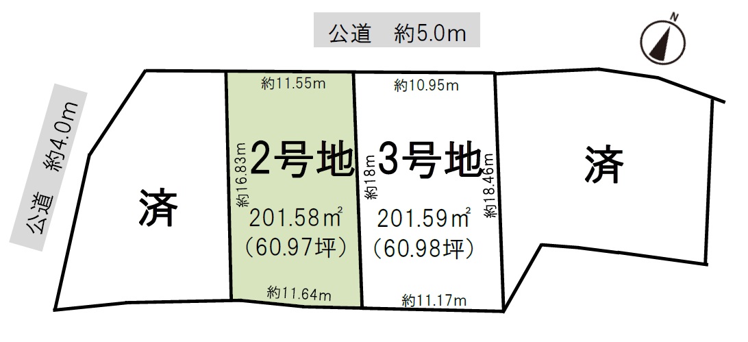 接道 北西側幅員約5.0m公道に約11.55m接道