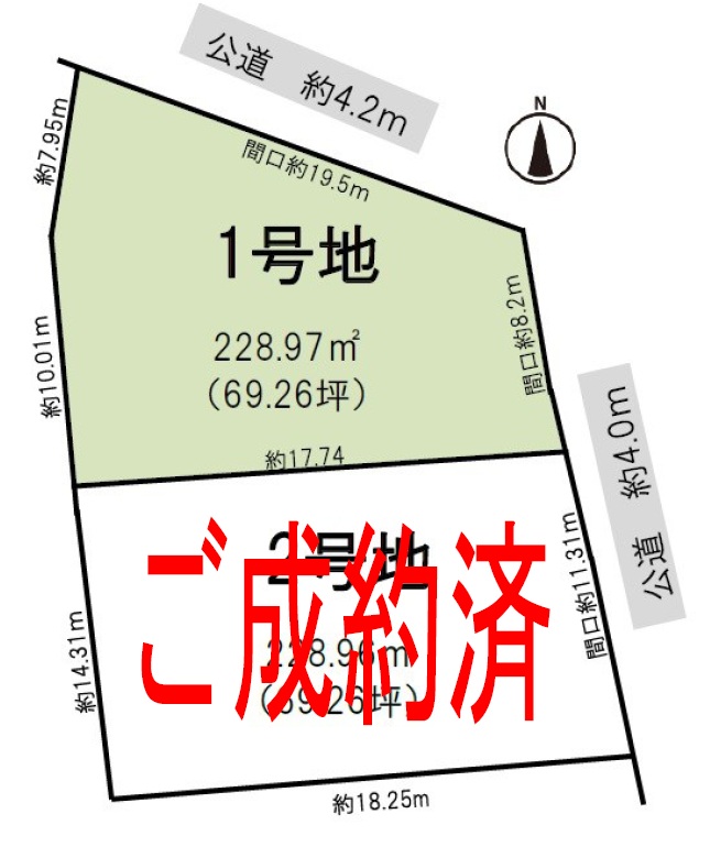 接道 北側幅員約4.2m公道に約19.50m接道